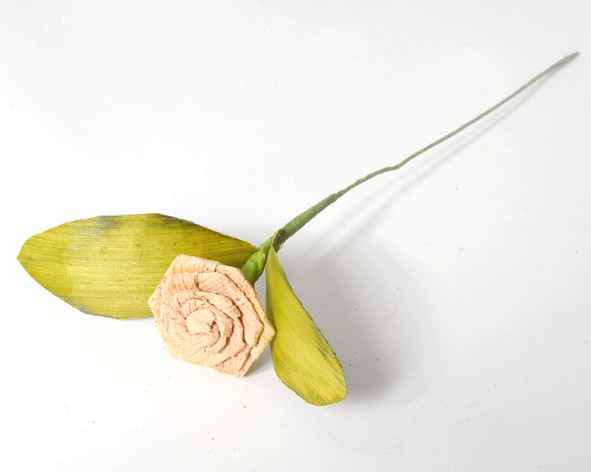 Flor feita artesanalmente com fibra natural de palha de bananeira. Tem haste de arame flexível e revestido com fita floral verde. A haste com a flor mede cerca de 30 cm de comprimento. A flor mede aproximadamente 5 cm de diâmetro. Preço por unidade.