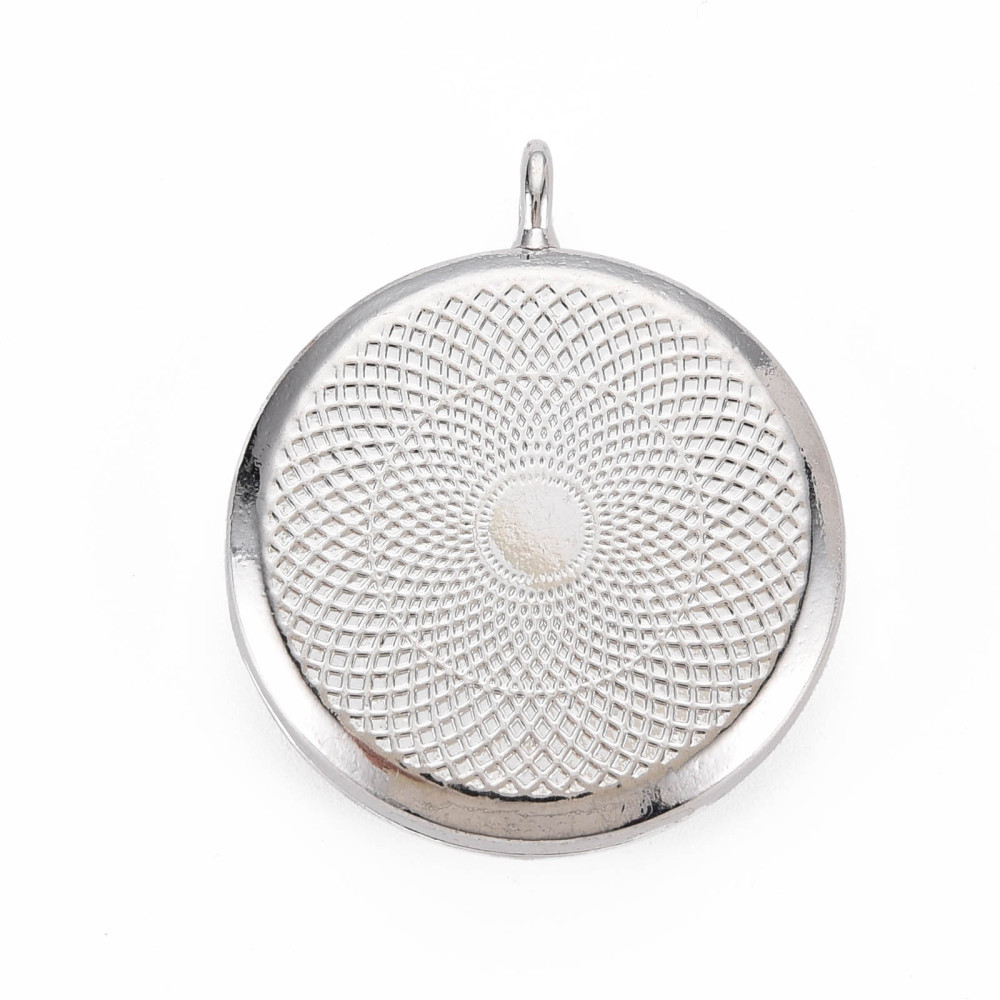 Pingente difusor redondo, modelo árvore da vida, com tampa magnética (com imãs para fechamento), feito em aço inox e platina.