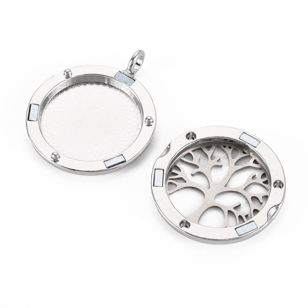 Pingente difusor árvore da vida (magnético) aço inox 36mm(IN-14)