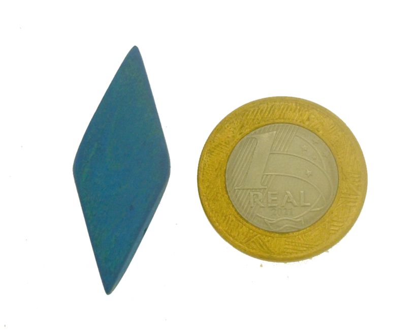 Entremeio losango em madeira natural, medindo cerca de 38x15 mm cada um. Possui 2 furos laterais, transversais (de um lado a outro da peça).