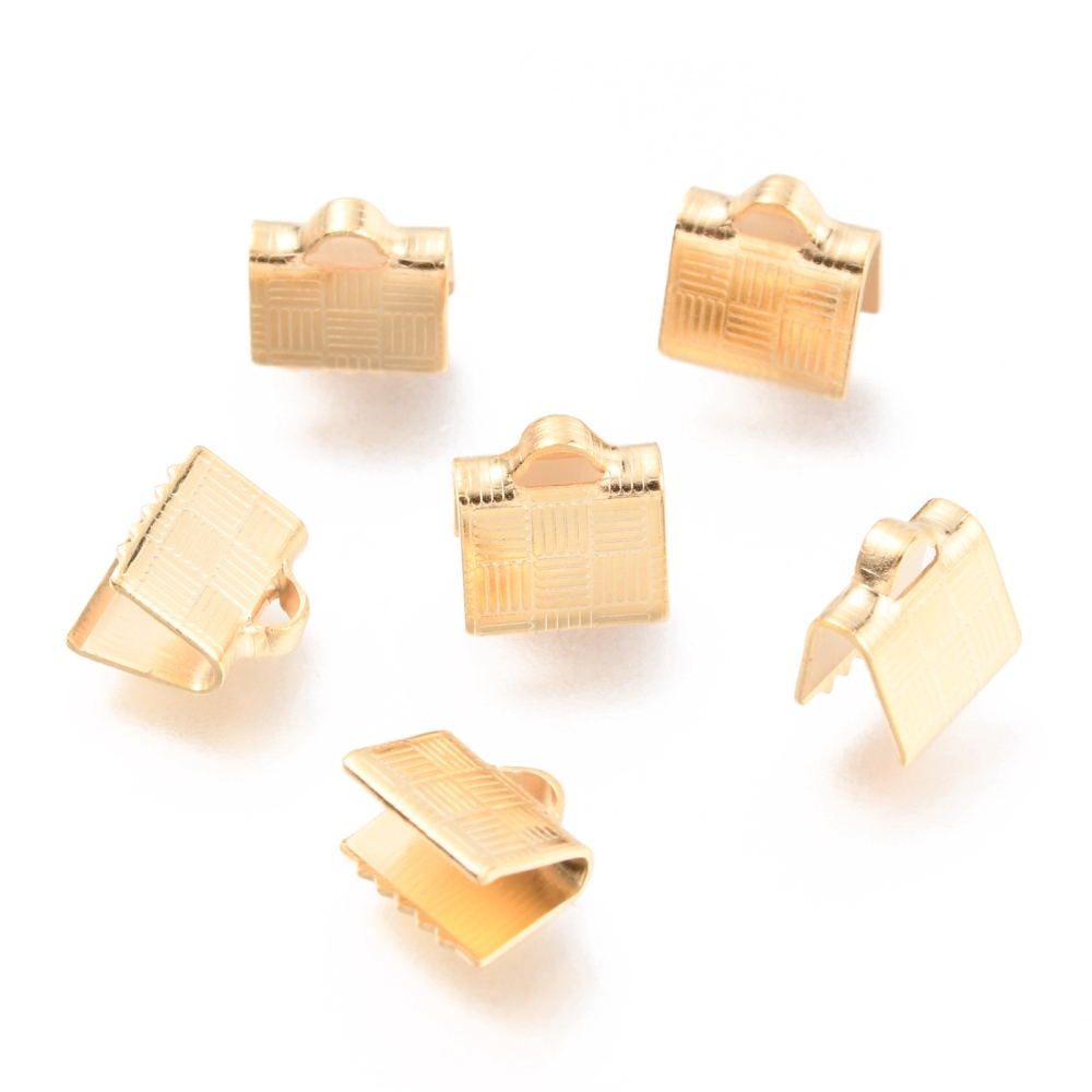 Terminal quadrado com dentes em aço inox dourado, medindo 7x7x4.5 mm. Preço por par.