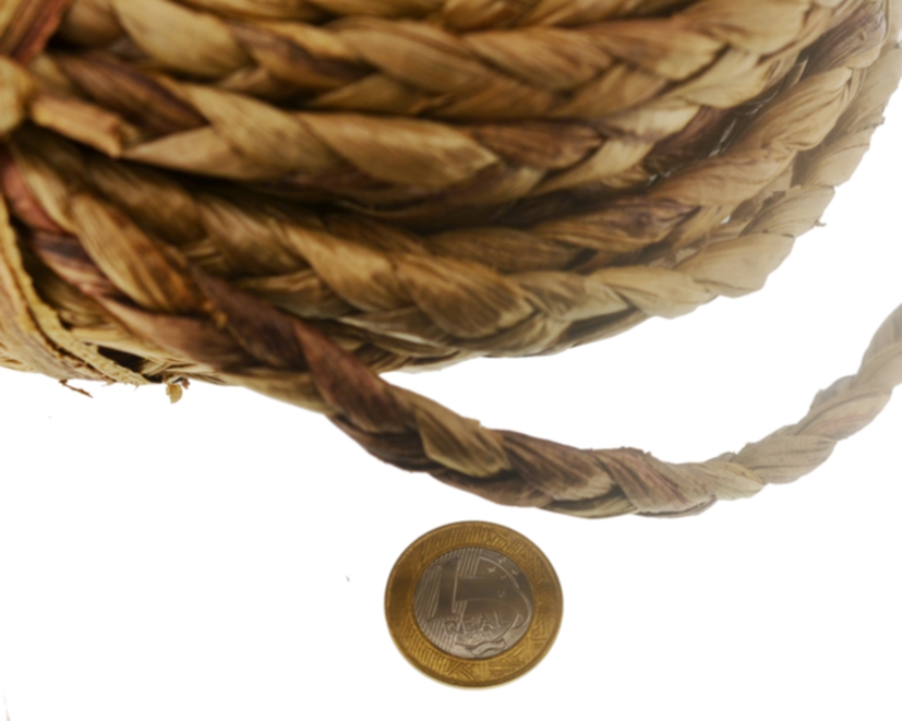 Trança achatada em palha de bananeira natural, medindo cerca de 1 cm de largura.