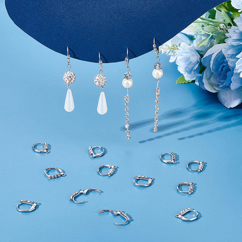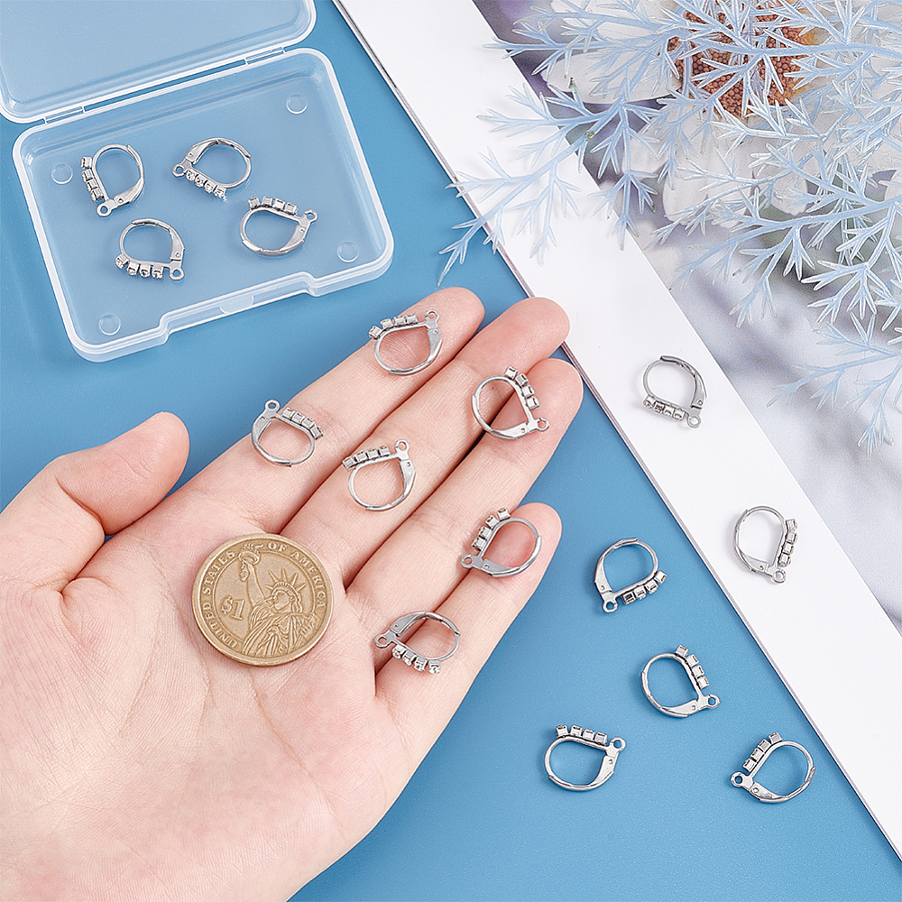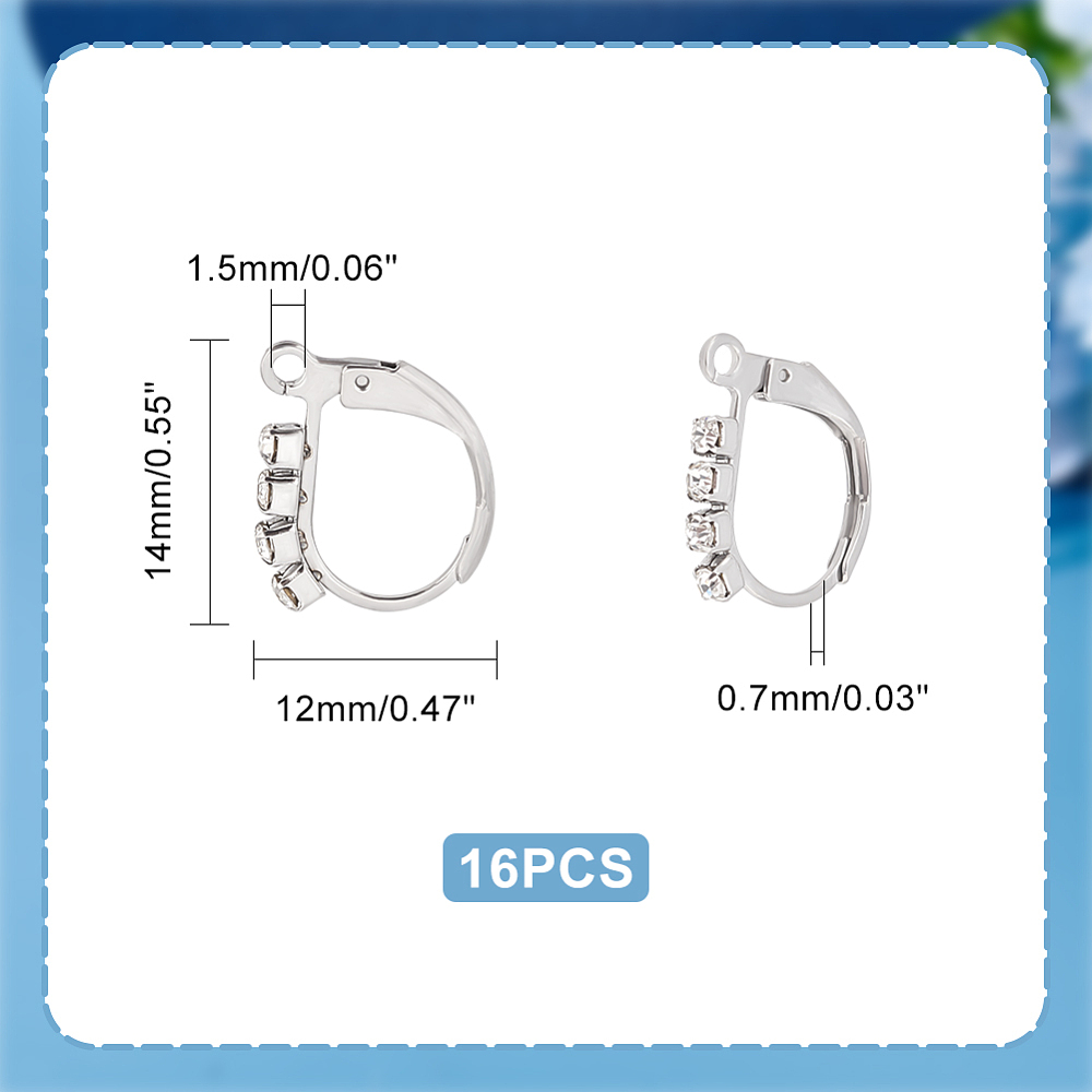Brinco anzol (leverback) com trava em aço inox, com pedras de zircônica. Mede cerca de 14x12 mm.