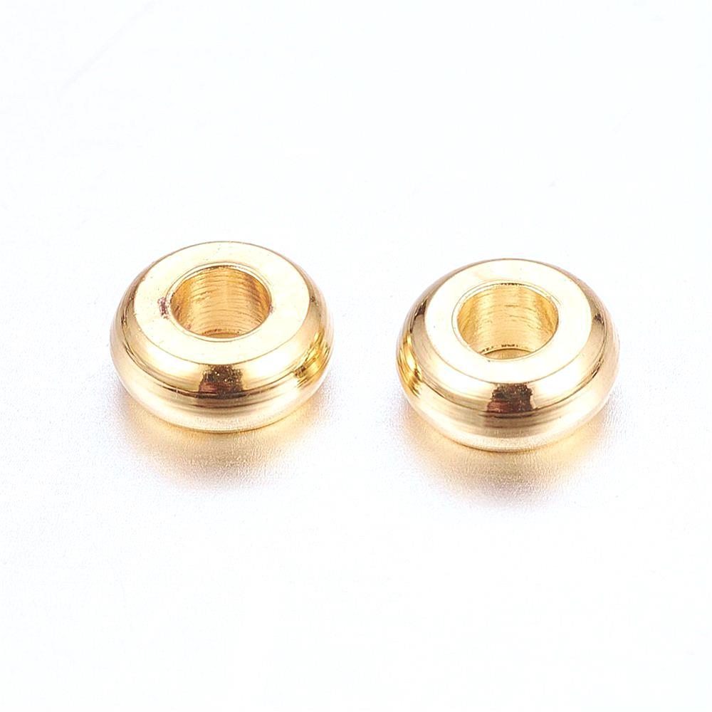 Entremeio rodinha em aço inox dourado, medindo 4x2 mm cada uma. Furo de 1.5 mm.