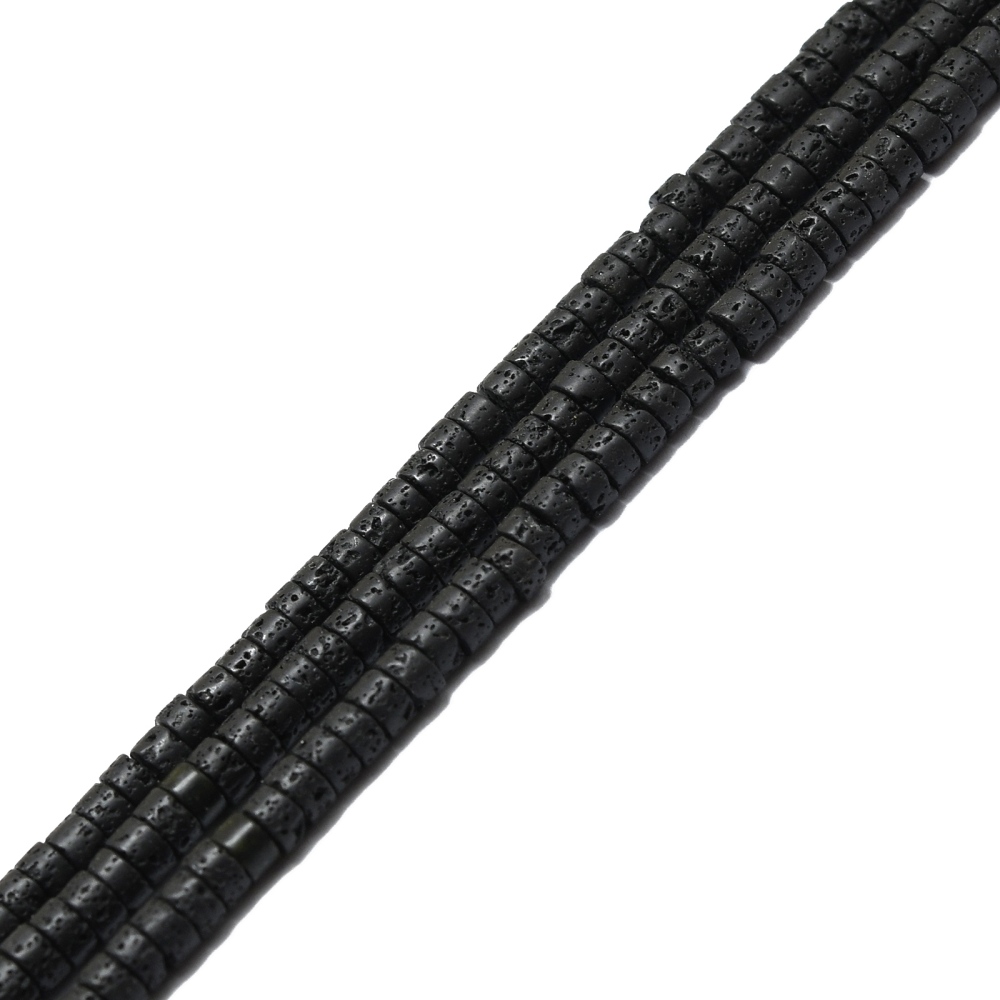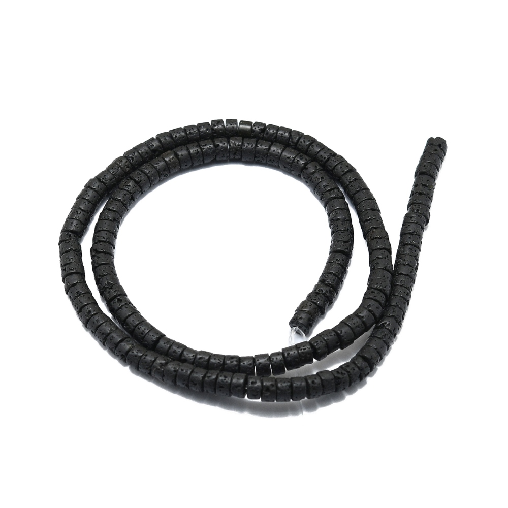 PRODUTO IMPORTADO. Pedra natural lava vulcânica preta entremeio rodinha, medindo cerca de 4x2 mm cada um. Furo: 0.6 mm.